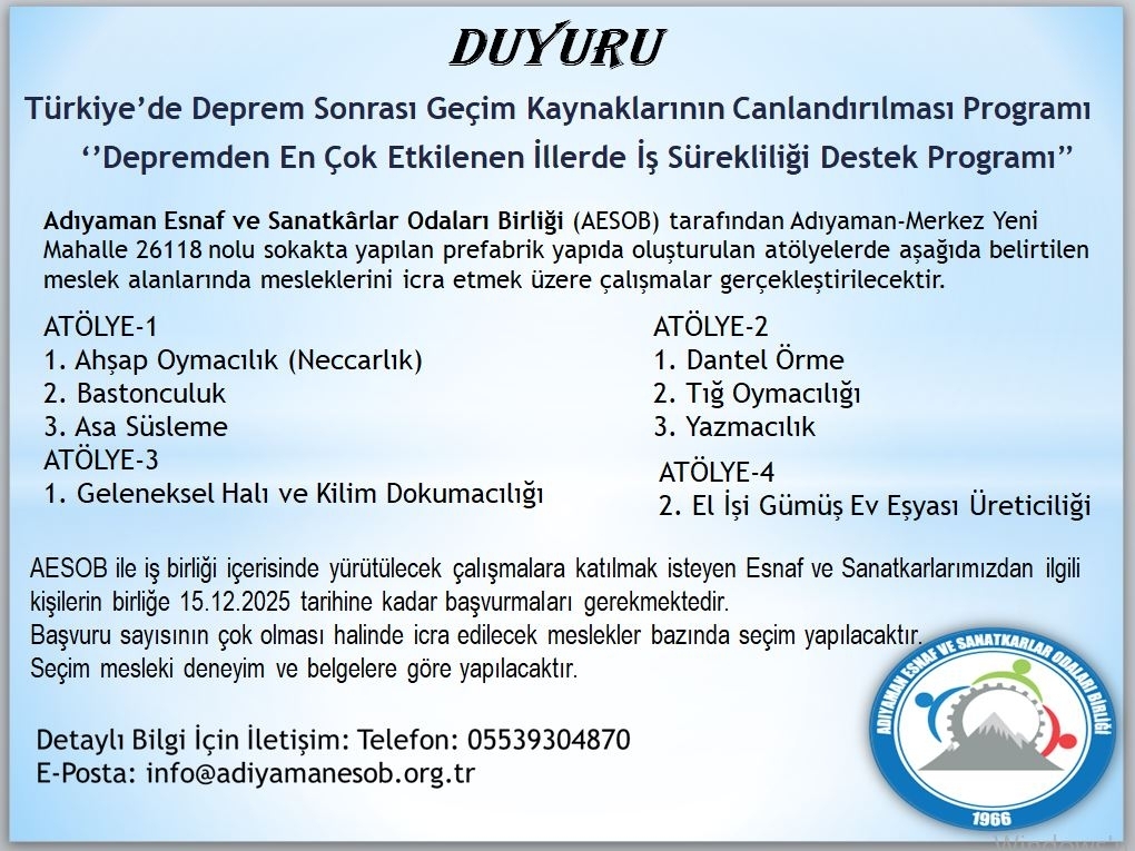 Adıyaman Esnaf ve Sanatkarlar Odaları Birliği’nden üyelerine özel avantaj